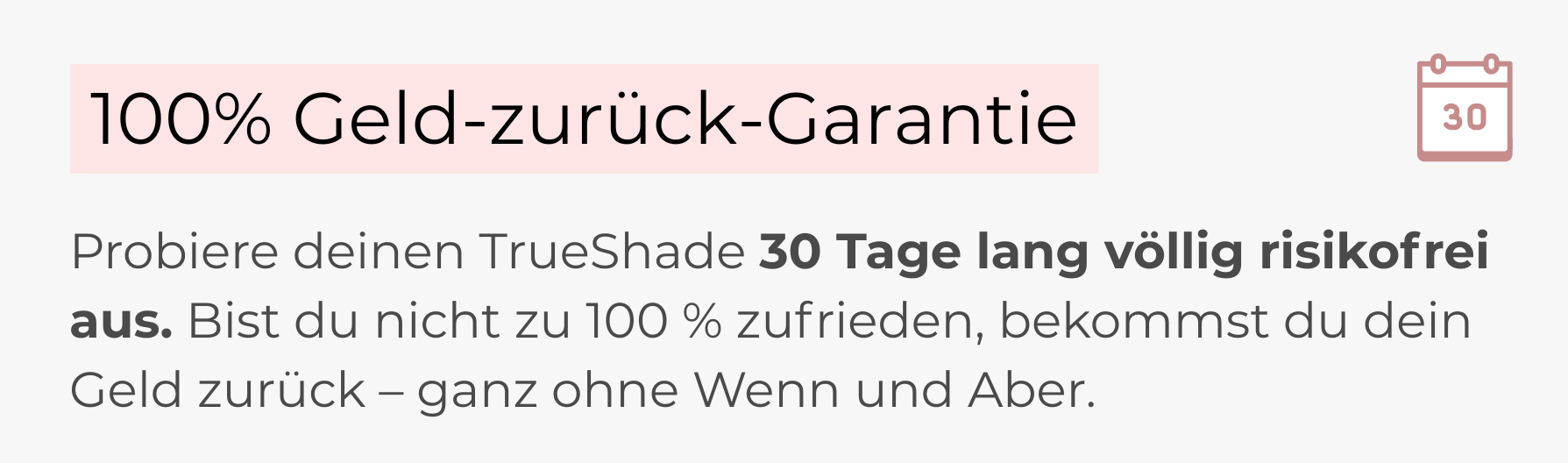 Probiere das Produkt 30 Tage lang völlig risikofrei aus. Bist du nicht zu 100% zufrieden, bekommst du dein Geld zurück – ganz ohne Wenn und Aber.