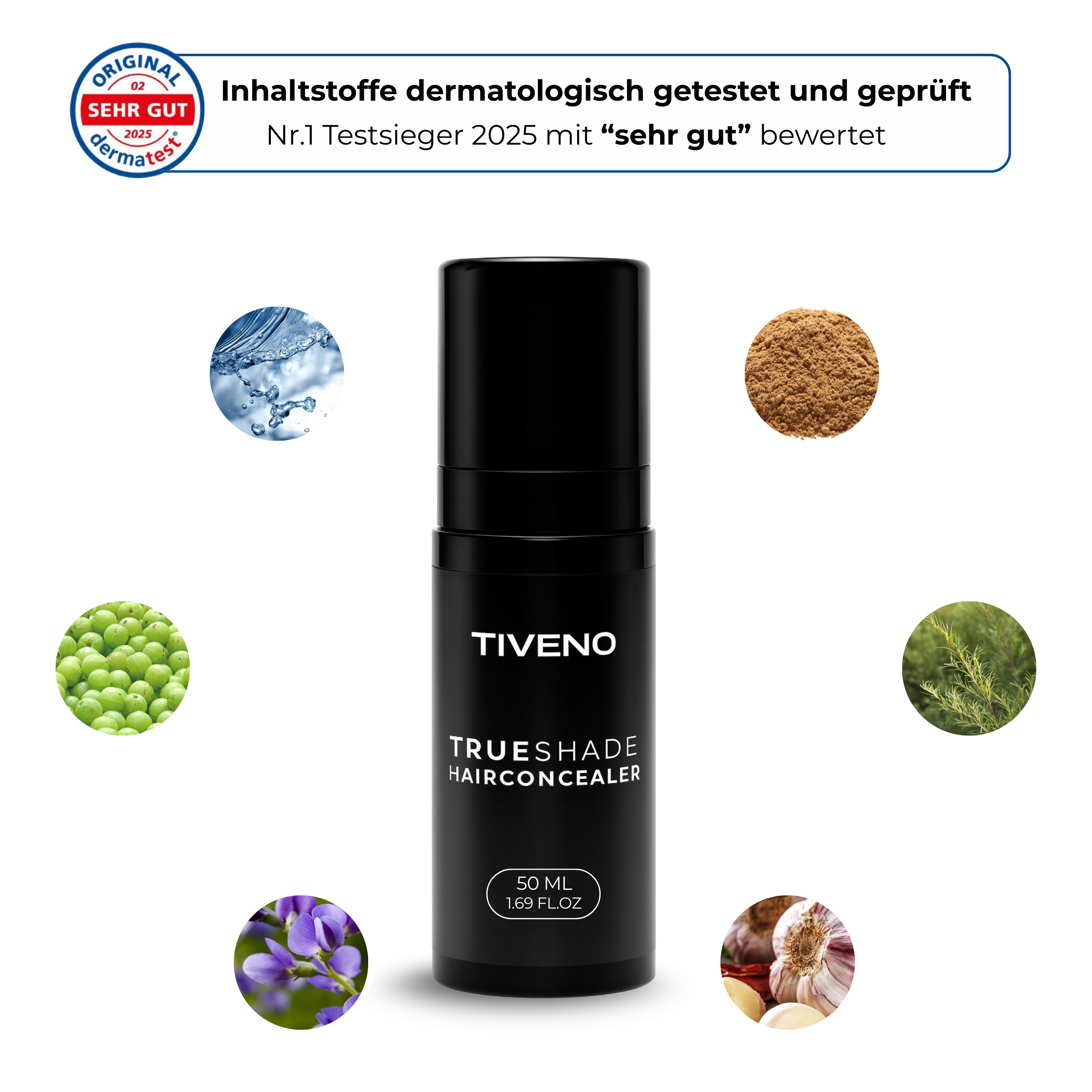 Amla-Fruchtextrakt, Indigo-Extrakt, Teebaumöl , Knoblauchextrakt, polysorbat 20 und Natriumbenzoat