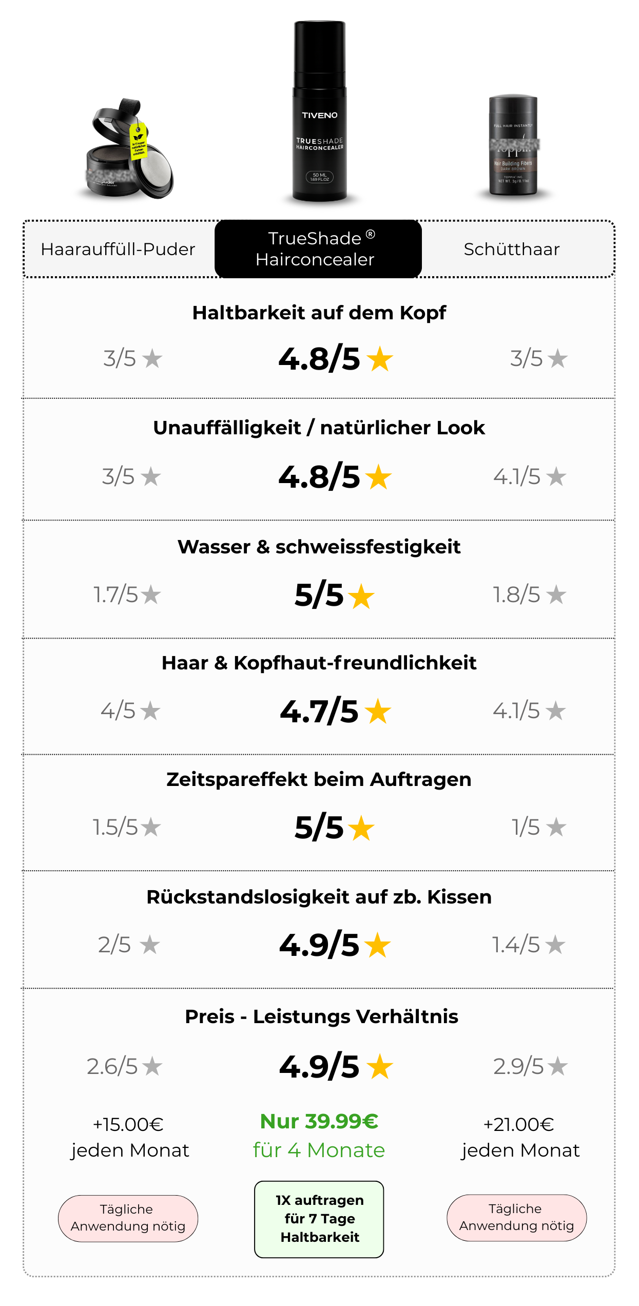 TrueShade im direkten Vergleich mit Schütthaar & Haarauffüll-Puder