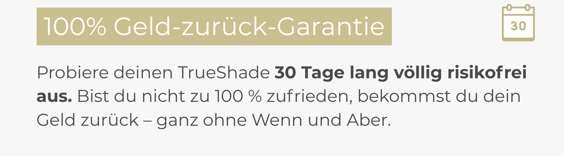 Probiere das Produkt 30 Tage lang völlig risikofrei aus. Bist du nicht zu 100% zufrieden, bekommst du dein Geld zurück – ganz ohne Wenn und Aber.